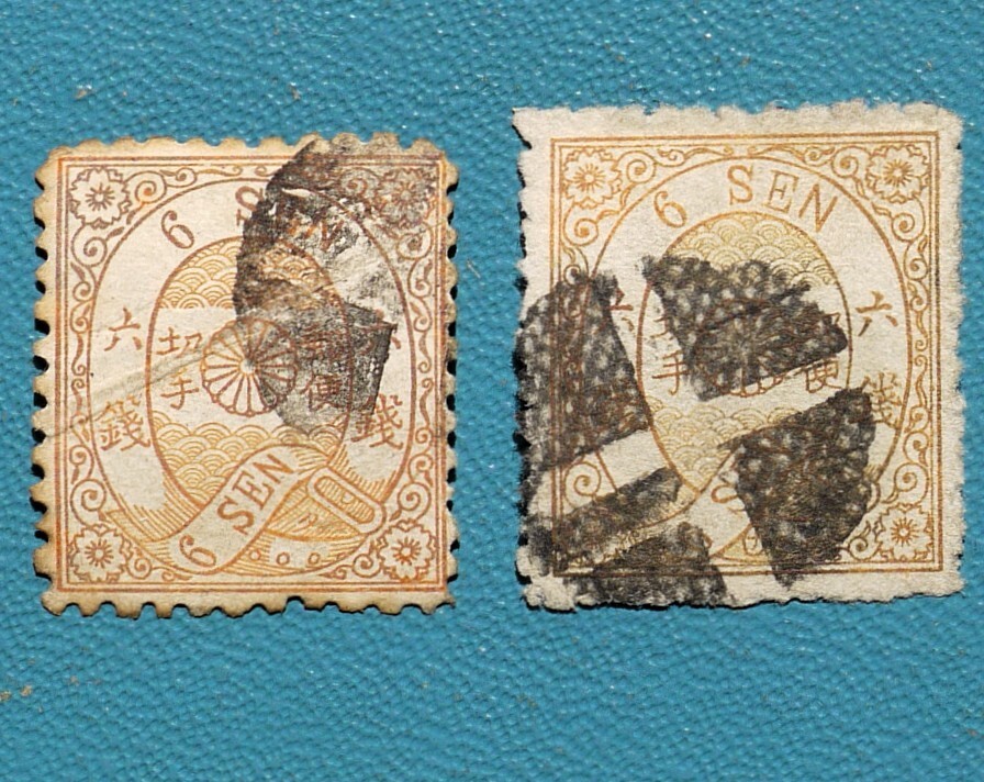 - 【手彫!!】⑩ 改桜6銭2枚ロット(タ)(ナ) 白抜十字印 使用済 型価5.5千円