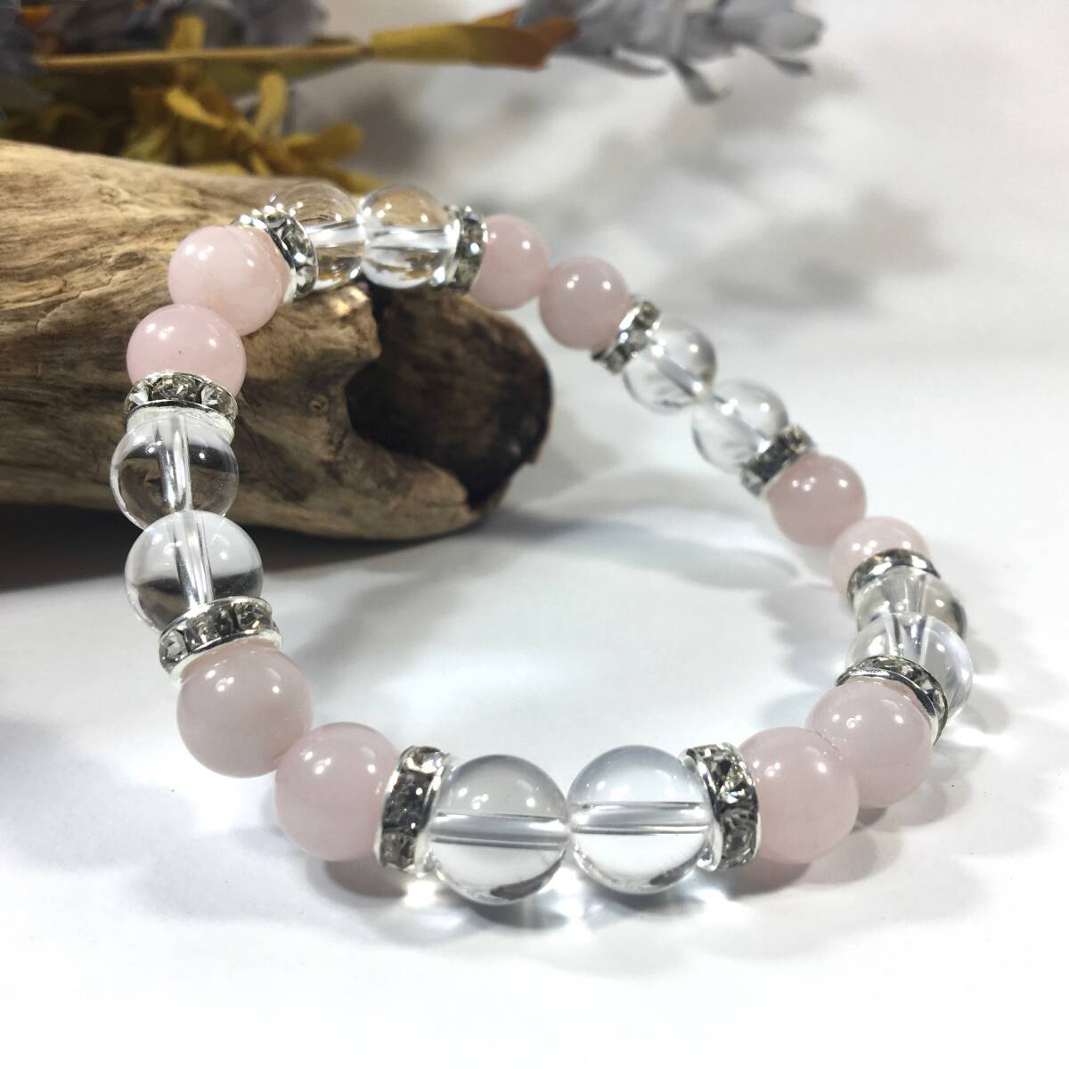- ローズクォーツ&水晶 パワーストーン ブレスレット 天然石ブレス シルバー 8mm /開運 浄化 4月 誕生石 クリスタル レディース 通販
