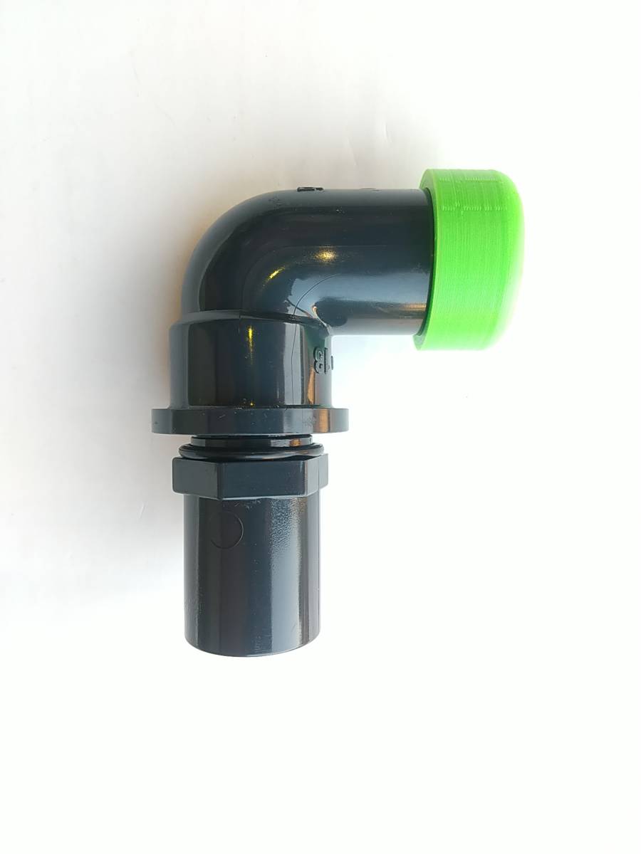 - メダカ 飼育ケース ボックス オーバーフロー対策 加工用品 塩ビ 蛍光グリーンキャップ付き 送料無料 Φ13 エルボ