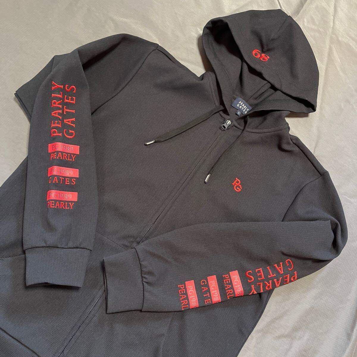 - 【超美品】PEARLY GATES パーリーゲイツ パーカー 5(L) ハイパワーストレッチ ワッフル素材 フーディ 紺 春秋ゴルフ 定価3.5万 送料無料