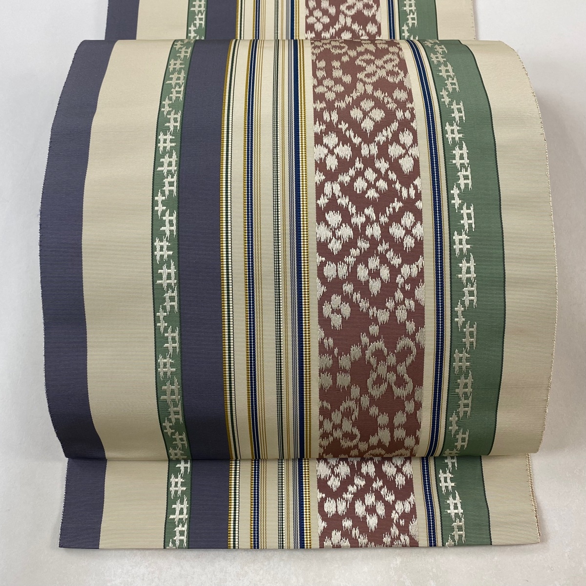- 名古屋帯 美品 逸品 証紙 本場筑前博多織 八寸名古屋帯 伊都間道 ベージュ 正絹 【中古】