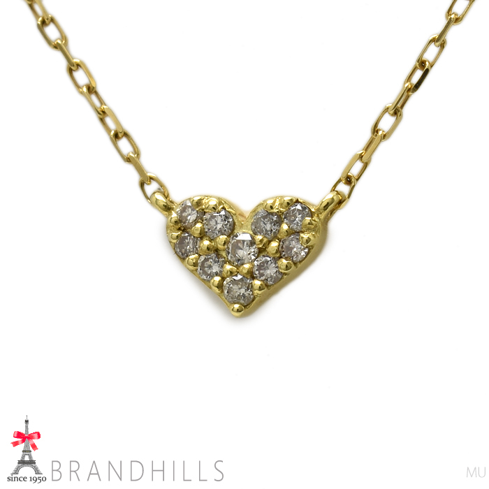 > ダイヤモンド 0.06ct ネックレス K18金 750YG イエローゴールド ハートモチーフ 1.4g 極美品