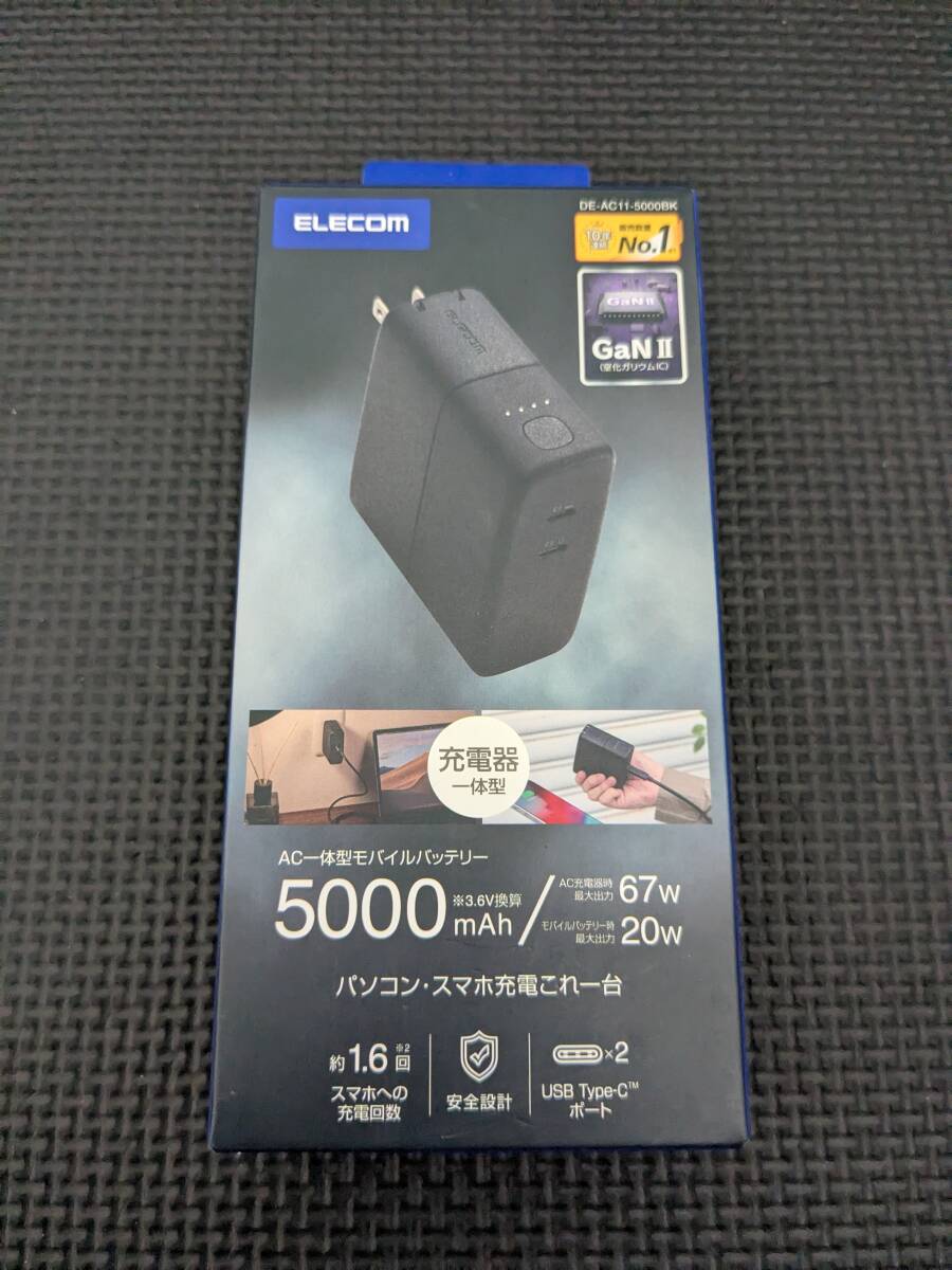 > ◎0709u3022 エレコム モバイルバッテリー 5000mAh AC時67W 20W コンセント一体型 Type-C PSE技術基準適合 ブラック DE-AC11-5000BK