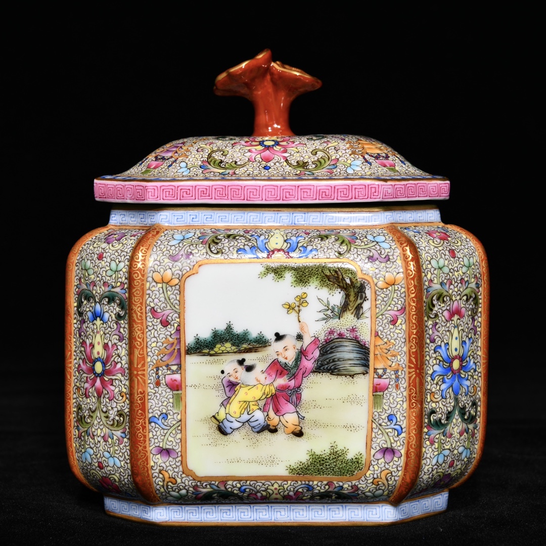 > 多宝閣 ■ 0171UL.9人間国宝 中国磁器 中国骨董【清代乾隆年間の子供遊び文様を施した古月軒茶壺】施釉陶 陶芸