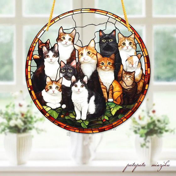 - 猫まみれ 猫 アクリルプレート アクリルペンダント ディスプレイ ステンドグラス 風 ウォールディスプレイ ねこ パタミン