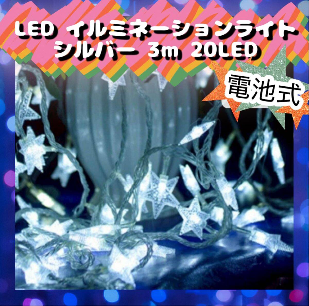 - イルミネーション LED ライト 3m 星型 電池 シルバー ハロウィン クリスマス