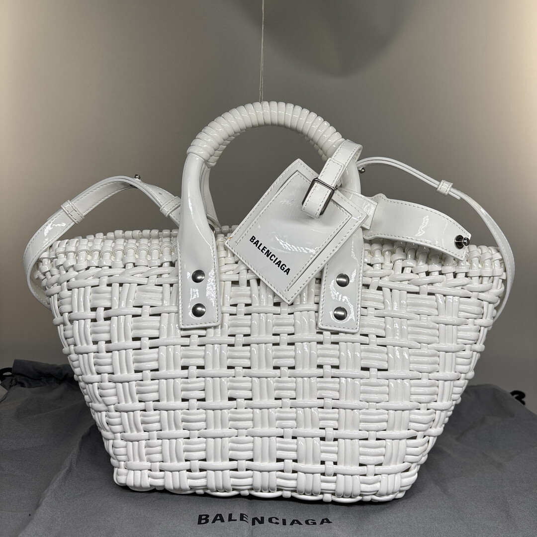 - 新品未使用 バレンシアガ ビストロ XS バスケット ハンドバッグ ホワイト バッグ ミラーファブリック トートバッグ ショルダーバッグ