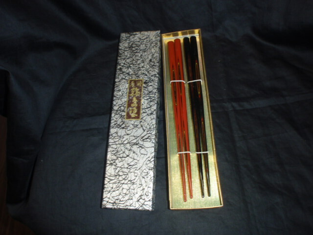 - 輪島箸 高級木製箸 2膳 夫婦箸 輪島塗箸 新品未使用ですが長期在庫品なのでお安く出します。箱付き c