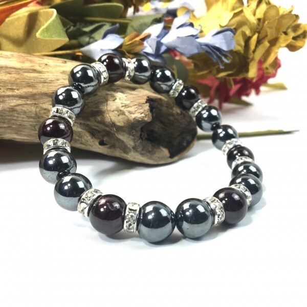 > ヘマタイト×ガーネット パワーストーン ブレスレット 天然石ブレス (シルバー) 10mm メンズ・レディース 健康運 勝利 還暦祝い