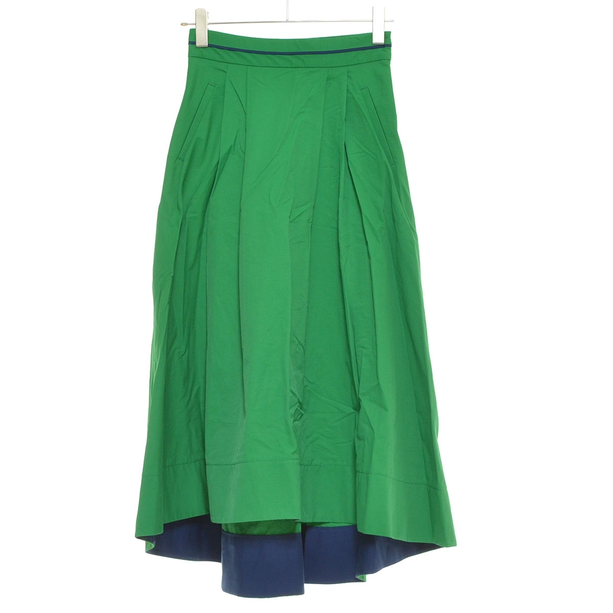 > □548222 未使用品 Mila Owen ミラオーウェン ○ロングスカート アシメヘムバイカラーフレアSK サイズ0 レディース グリーン