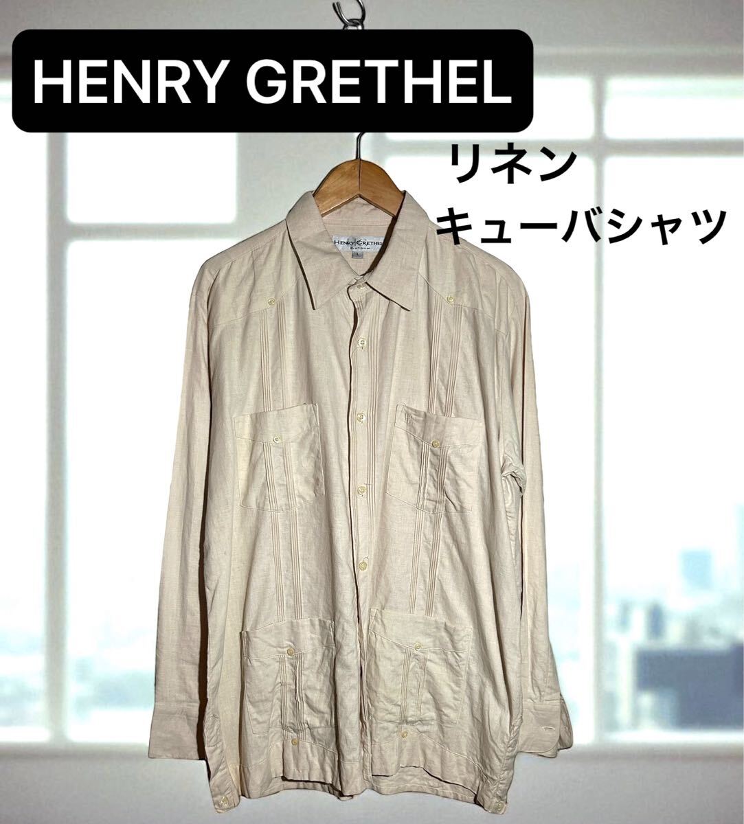 - 1990's HENRY GRETHEL ヘンリーグレテル ヴィンテージ リネン キューバ 長袖 シャツ 4ポケット 刺繍ロゴ ボックスシルエット アメリカ USA