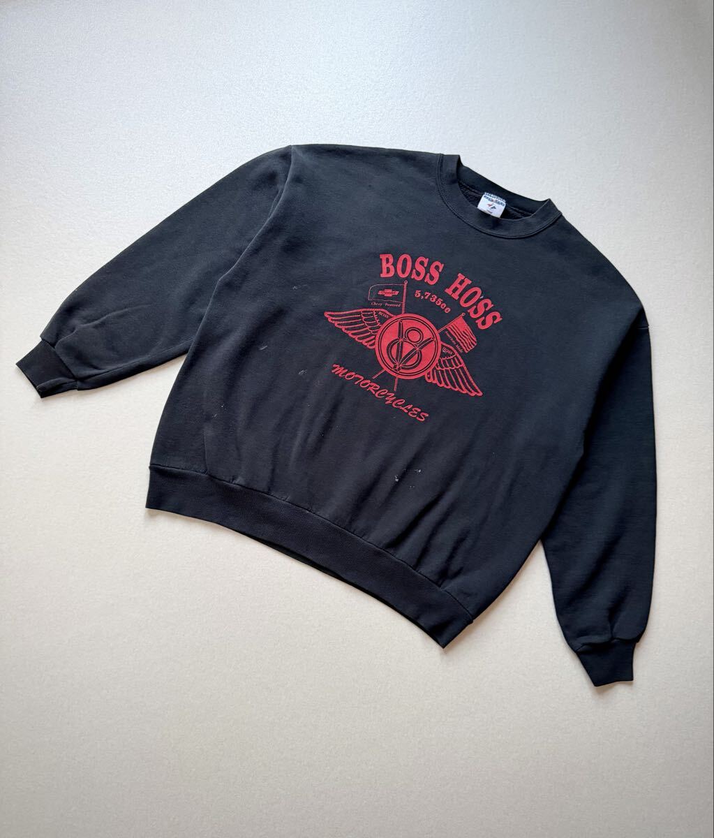 > 90s USA製 BOSS HOSS MOTORCYCLES W-PRINT SWEAT VINTAGE アメリカ製 ボスホス モーターサイクル スウェット オールド ハーレー ビンテージ