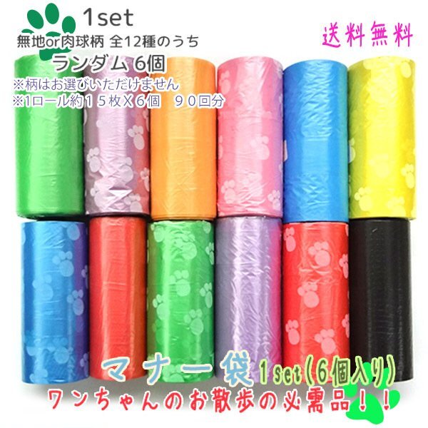 - 送料無料 ワンちゃん お散歩 マナー袋 6ロール マナーケース 詰め替え用 / 犬 うんち用ゴミ袋 排泄便 うんち処理 うんち袋 15枚6ロール90回