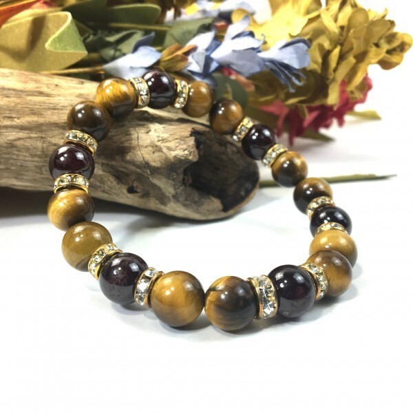 > タイガーアイ×ガーネット パワーストーン ブレスレット 天然石ブレス (ゴールド) 10mm メンズ・レディース 金運 仕事運 願望成就