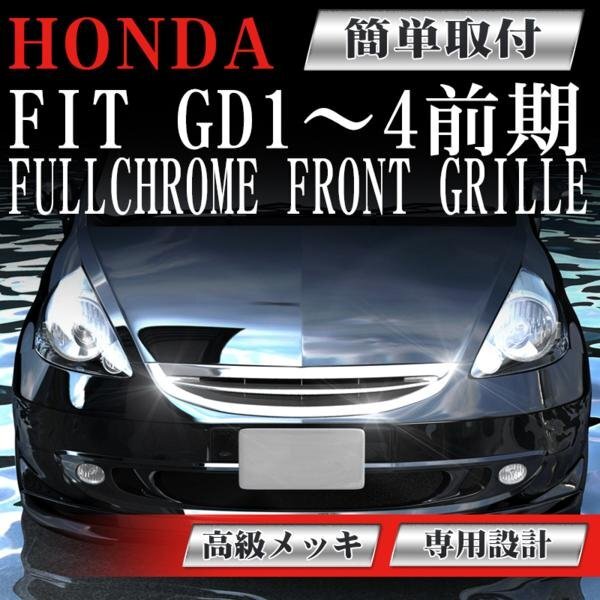 - フロントグリル メッキグリル フィット GD1 GD2 GD3 GD4 前期 ホンダ フィングリル メッシュグリル 交換 パーツ グリル ダクトグリル