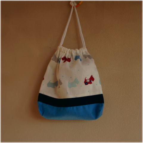 - 【入学、入園!】550円ワンワンシルエットパッチワーク巾着袋 【手作り小物】