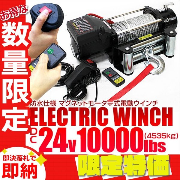 > 【限定セール】電動ウインチ DC24V 最大牽引 10000LBS 4537kg 無線リモコン付属 電動 ウインチ 引き上げ機 車 ボート 牽引 けん引 防水