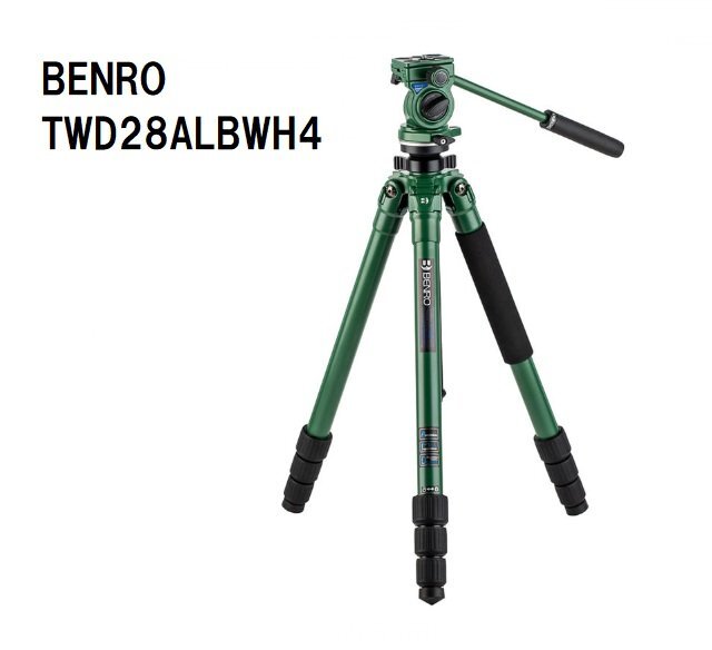 - 【特価品/送料無料】未使用品 BENRO(ベンロ) TWD28ALBWH4 グリーンアルミニウム三脚 WH4 ビデオ雲台付き 6931747310494