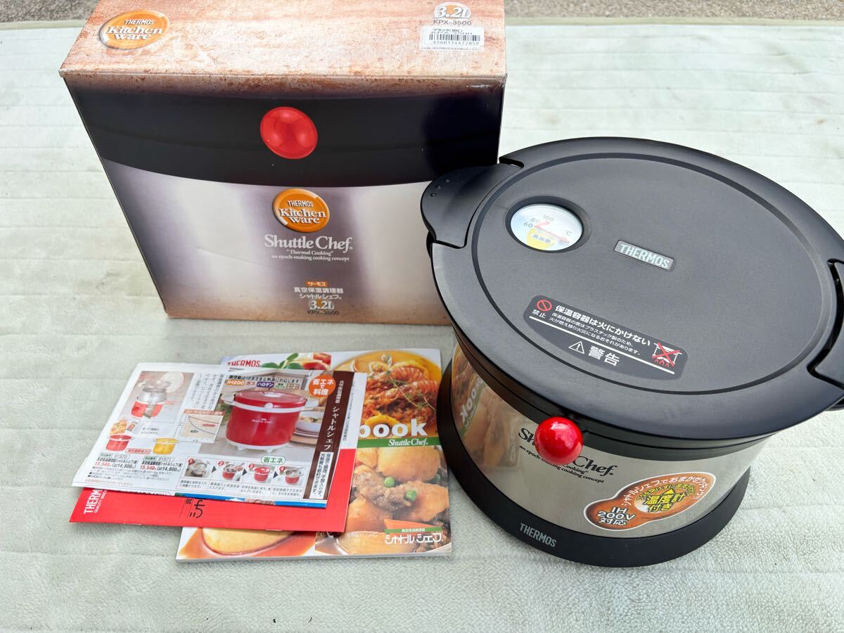 - 新品 未使用 THERMOS サーモス シャトルシェフ KPX-3500 3.2L 真空保温調理器 鍋 調理器具 温度計付き 内鍋IH対応