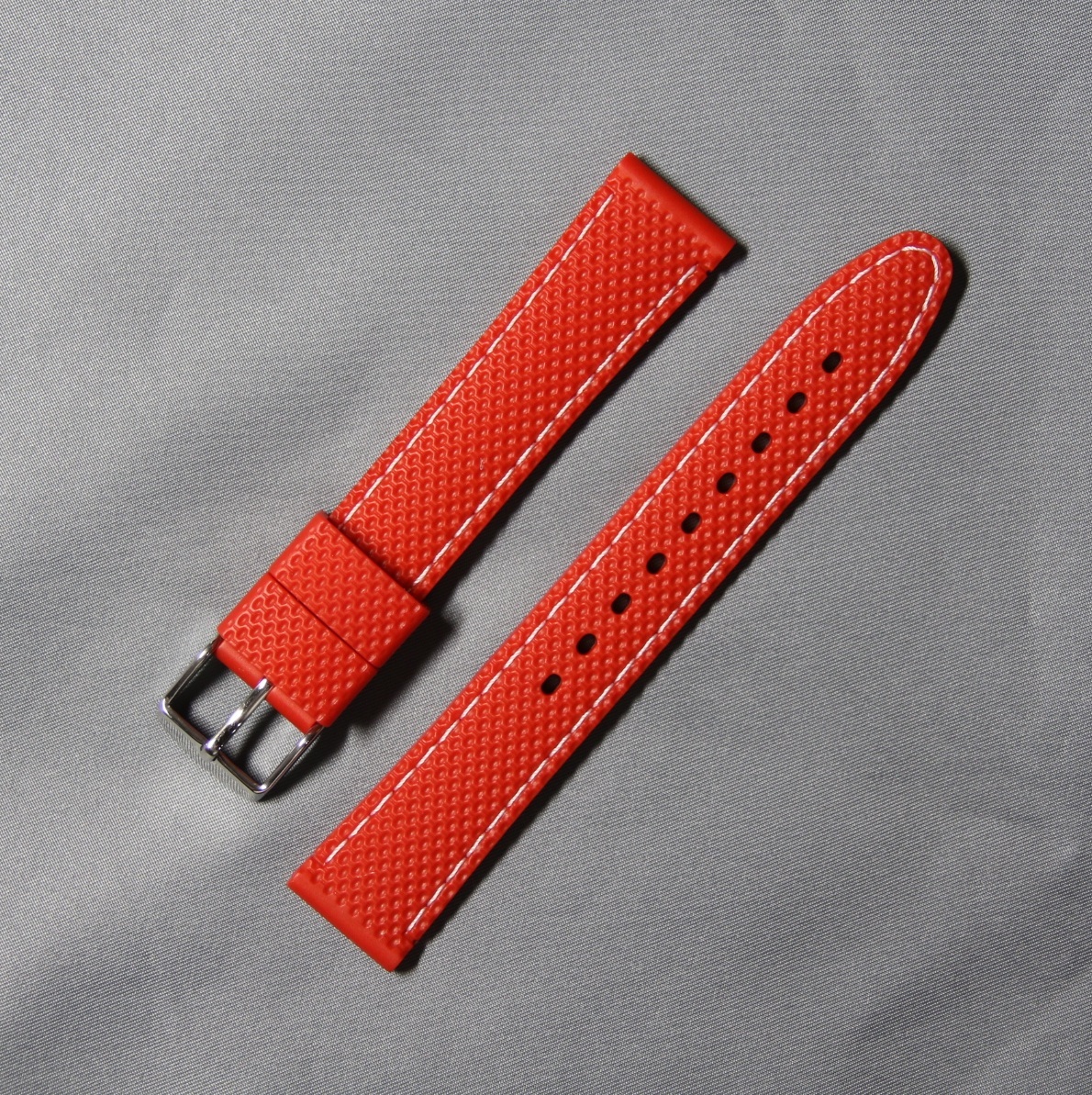 - 18mm シリコンゴム ラバー 赤・レッド 白・ホワイトステッチ入 ストラップ SS尾錠 ダイバー 潜水 スクーバ サーフィン 新品
