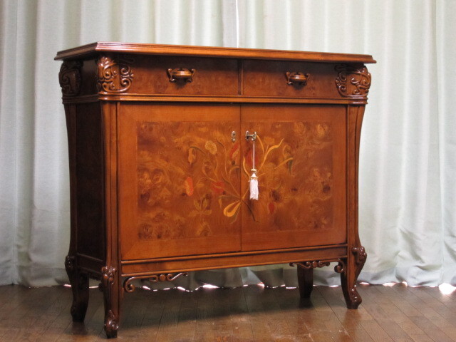 > 最高級 イタリア製 Real Stil Mobili社製 象嵌 インレイ アールヌーヴォー様式 彫刻 クラシック サイドボード 鍵付き/西洋/アンティーク