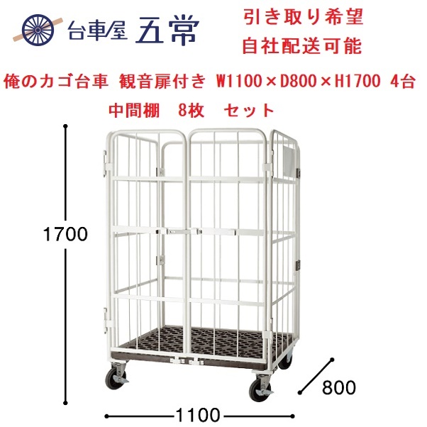 > 日本製 美品 五常 観音扉付きかご台車+中間棚2枚 4セット W1100×D800×H1700手渡し希望/自社配送可能(配送エリアについてお問合せ下さい)