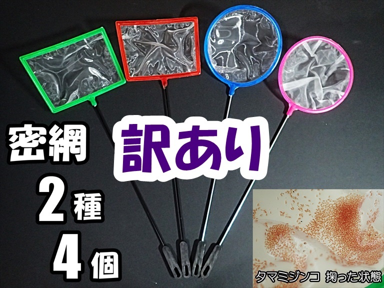 > 【訳あり】送料込 密網 ネット 4個(角型2個丸型2個)水槽用品 ミジンコ メダカ針子用に ブラインシュリンプ・ゾウリムシは掬えません