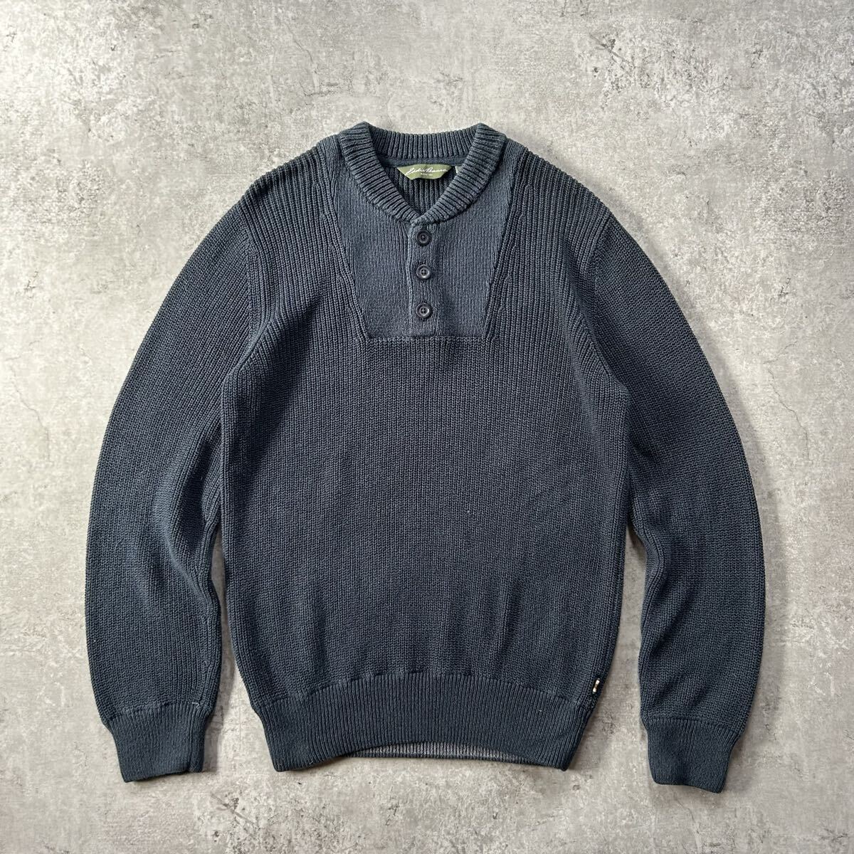 - 00s エディーバウアー ヘンリーネックコットンニット ブラック L