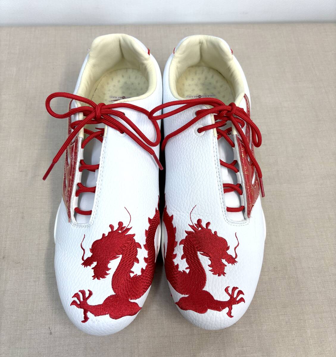 > M1391/ DRAGONBEARD ドラゴンベアード 白赤 レザー スニーカー 27.5cm/DB-3903J ドラゴン 龍 靴 メンズ ホワイト レッド