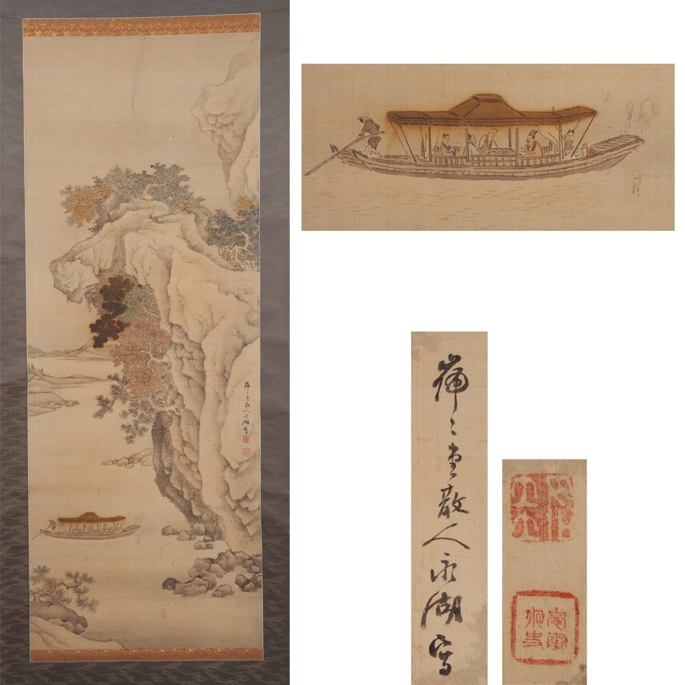 【夢工房】佐竹 永湖 筆 着色 赤壁之図 絹本 掛軸 箱入 ② G-729