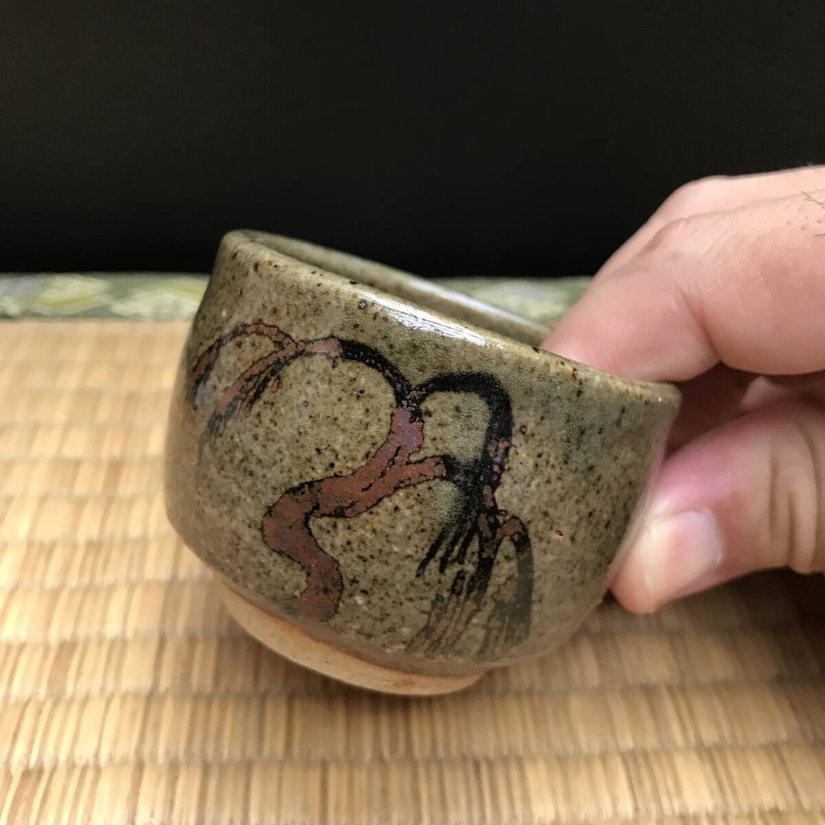 - 柳絵文のぐい呑み、バーナードリーチ銘印?酒器 猪口 小鉢 盃 杯 珍味入れ(R70814_B)