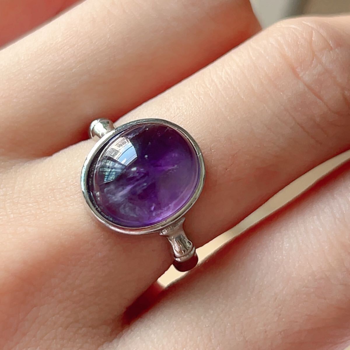 - 訳あり◇紫水晶◇アメジスト◇指輪◇リング◇フリーサイズ◇天然石◇パワーストーン◇巾着袋付き◇プレゼントにも037R10107