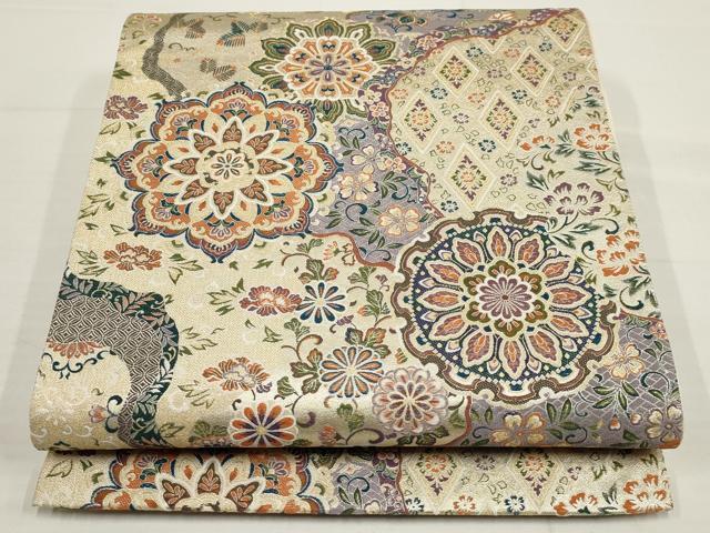 > 平和屋着物▼六通柄袋帯 壱阡八百織 王朝道長華文 金銀糸 上代128万円 正絹 逸品 AABA8552wj