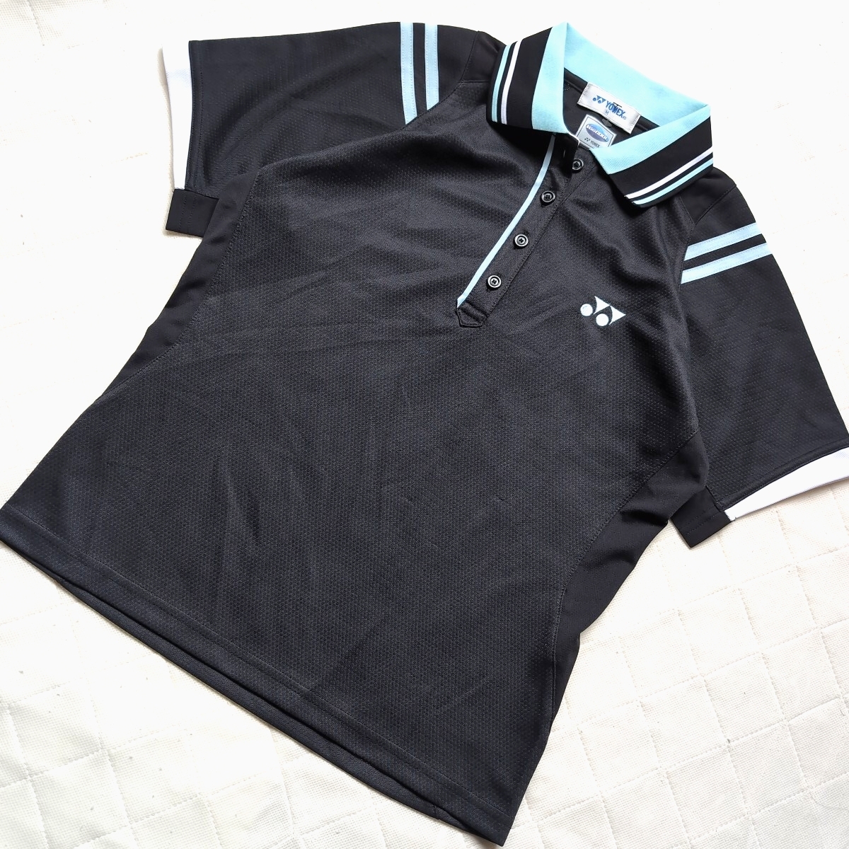 - 美品【YONEX】ヨネックス/ 半袖ポロシャツ(M) 黒&白.水色/ ベリークール.ドライメッシュ/バドミントン.テニス