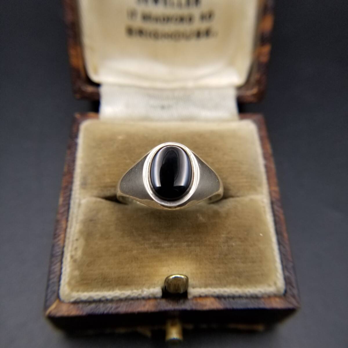 > 1982年 英国 ヴィンテージ オニキス オーバル 925 シルバー シグネット リング 指輪 銀 ミニマル シンプル Birmingham ホールマーク R16-R
