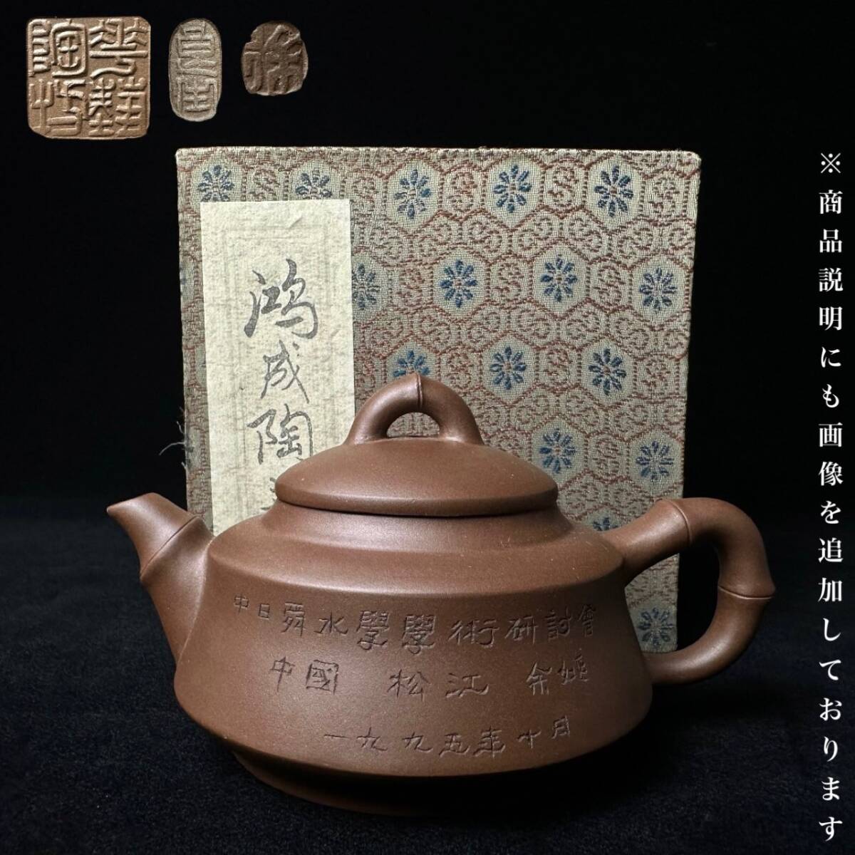 > コレクター買取品 中国美術 朱泥急須 茶壷 宜興紫砂 在銘 落款 箱付 茶器 唐物 茶道具 中国古玩 時代物