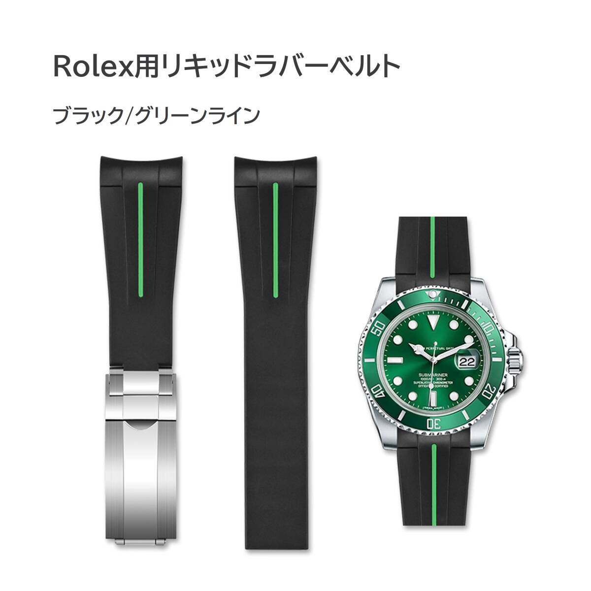 - Rolex用 ライン入りラバーベルト ラグ20mm ブラック/グリーンライン