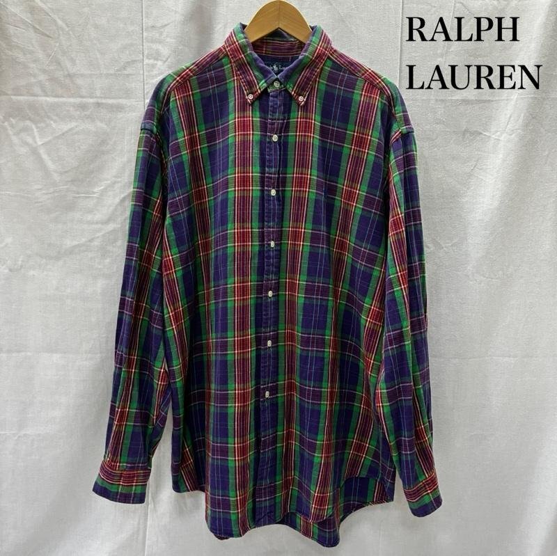 > ラルフローレン BLAKE 厚手cotton長袖シャツ チェック柄 L HONGKONG製 PURPLE L