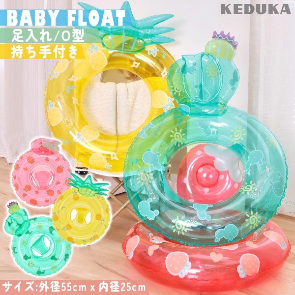 - ベビーフロート サボテン いちご パイン フルーツ 持ち手付き足入れ/O型 落下防止 パイナップル 赤ちゃん 取っ手 浮き輪 浮輪 プール