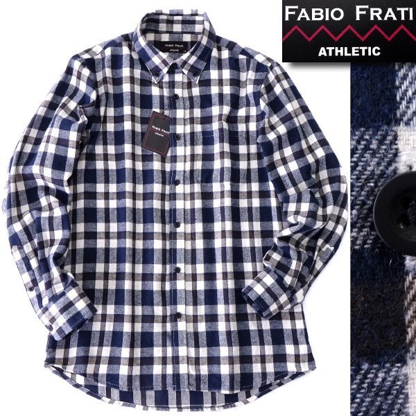 > 新品 ファビオフラーティ チェック柄 フランネル BD シャツ M 紺茶 【FF8W-H470_BN_M】 FABIO FRATI ネルシャツ 秋冬 メンズ 起毛