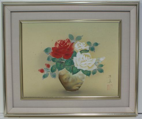 - ・作者: ・菊地径葉 作・画題:「花瓶に薔薇」・技法: 日本画(原画) (B1-HIO-R4-6-6-28.5)