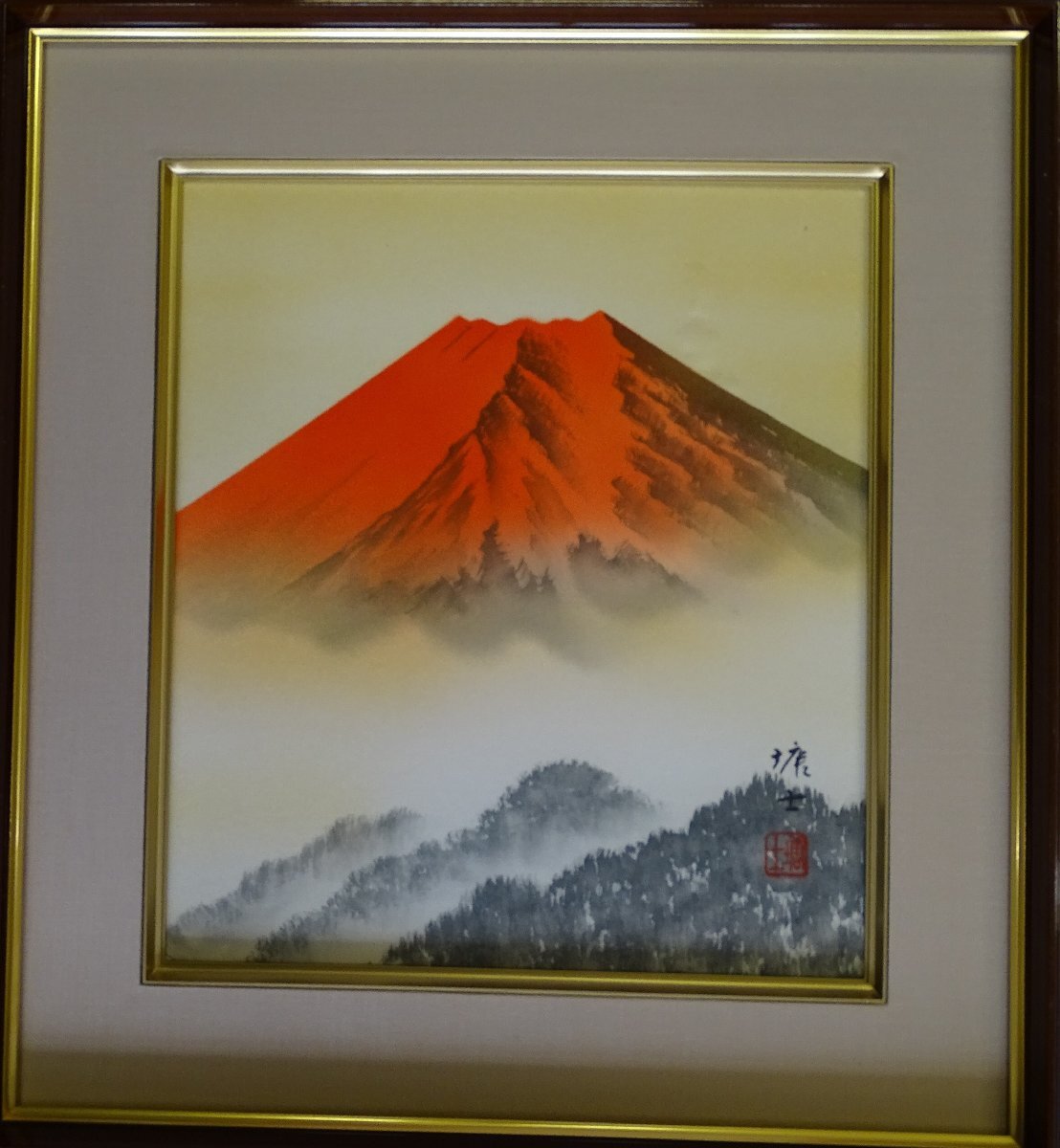 - ・作者:梅原唐士・画題:赤富士・技法:色紙絵(手描き)-NO-6-1-8.8