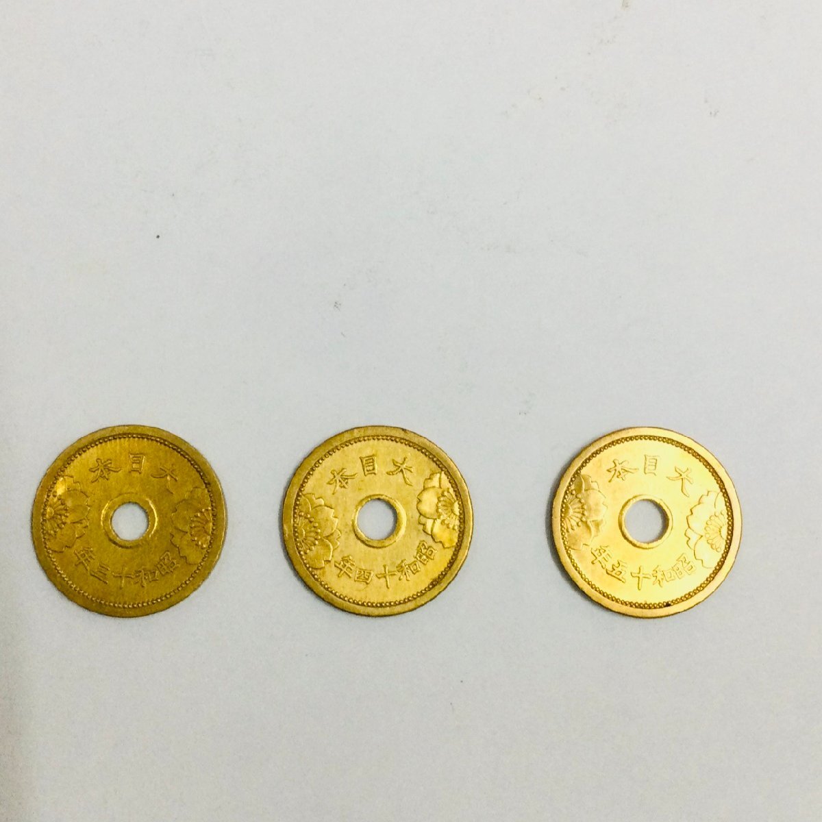> 【美品/KU】昭和13.14.15年 5銭アルミ 青銅貨 3枚セット 硬貨 古銭 アンティーク 日本 貨幣 近代 コイン IM0930/00005-5