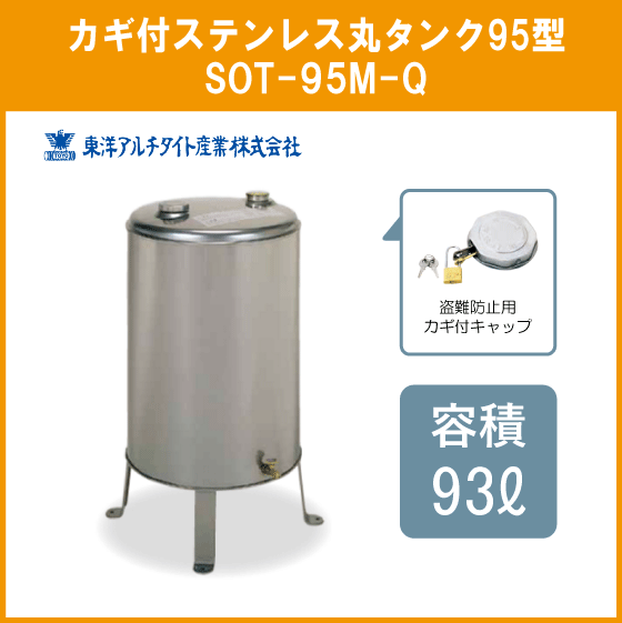 - 灯油タンク カギ付ステンレスオイルタンク(丸型) 石油給湯器 ボイラー用 95リットル SOT-95M-Q 東洋アルチタイト
