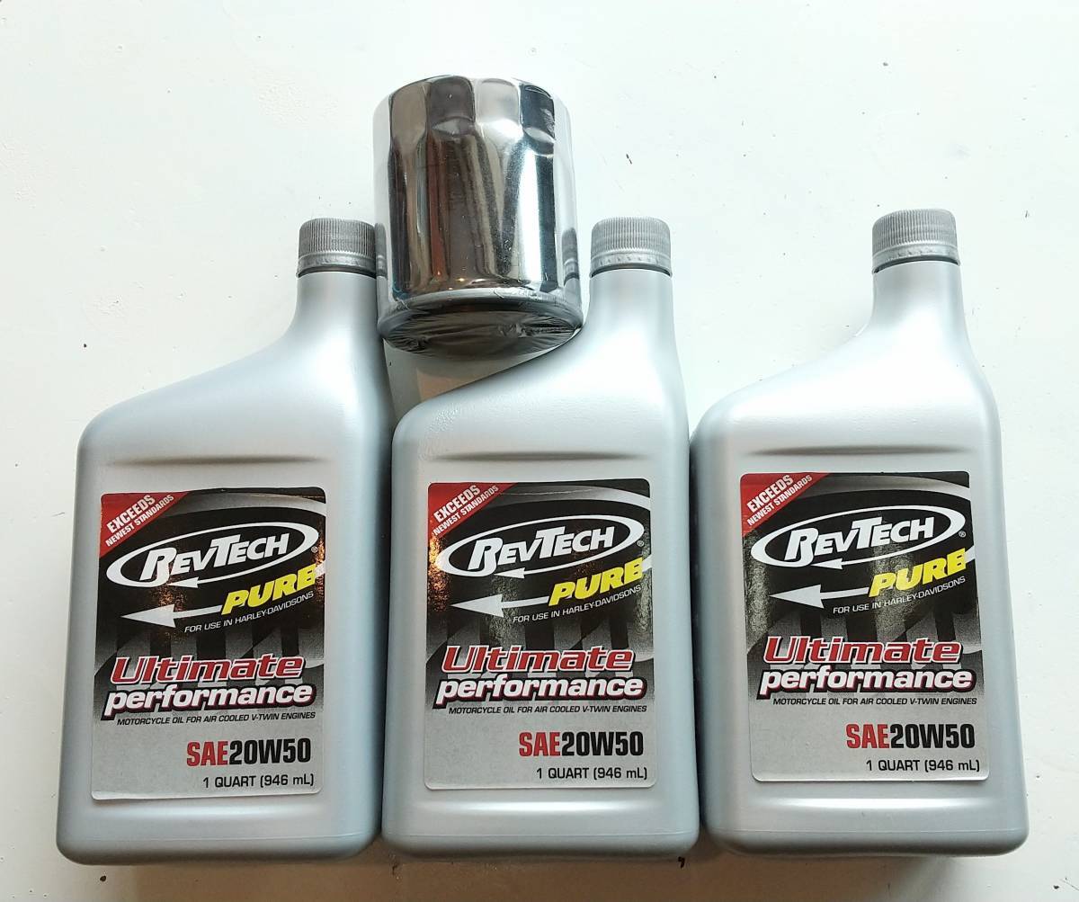 > ハーレー用 エンジンオイル フィルター セット レブテック PURE 20W-50 オイル3本 クロームフィルター1個 エボ TC88 XL スポーツスター