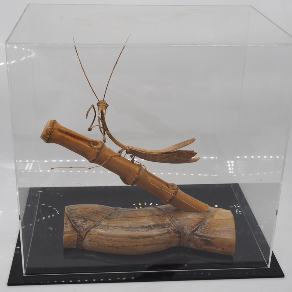 - 細密竹細工 カマキリ ミニチュア昆虫 手工芸 アクリルケース