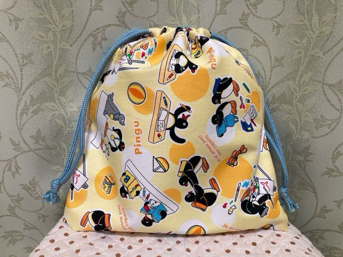 - 給食袋 巾着袋 巾着 小学校 ピングー ハンドメイド マチなし 裏地なし 一枚仕立て 入学