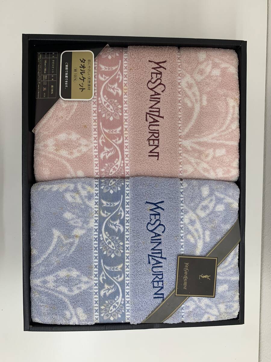 - 【未使用品】イヴ・サンローラン タオルケット ピンク ブルー (管理記号:8k44)
