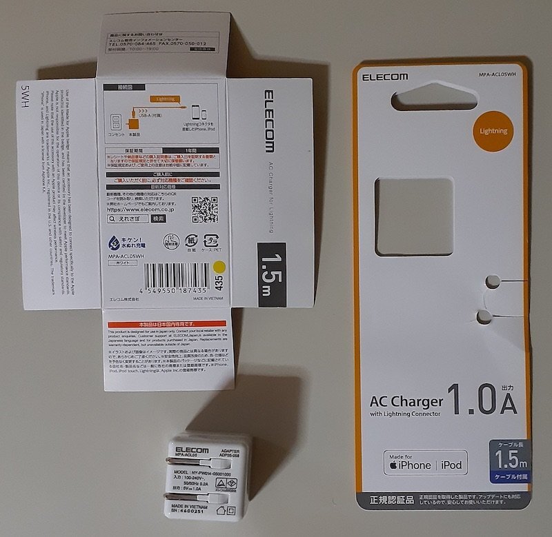 - 6759 MPA-ACL05WH ELECOM USB電源アダプタ USB-A 1ポート 1.0A 正規認証品 キューブ型 コンセントプラグ収納 本体のみ