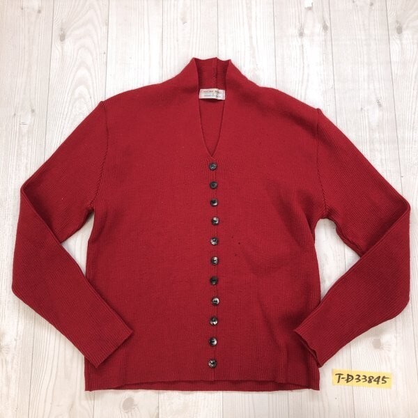 - RICHE BEAU レディース リブウール ニットセーター カーディガン M 赤